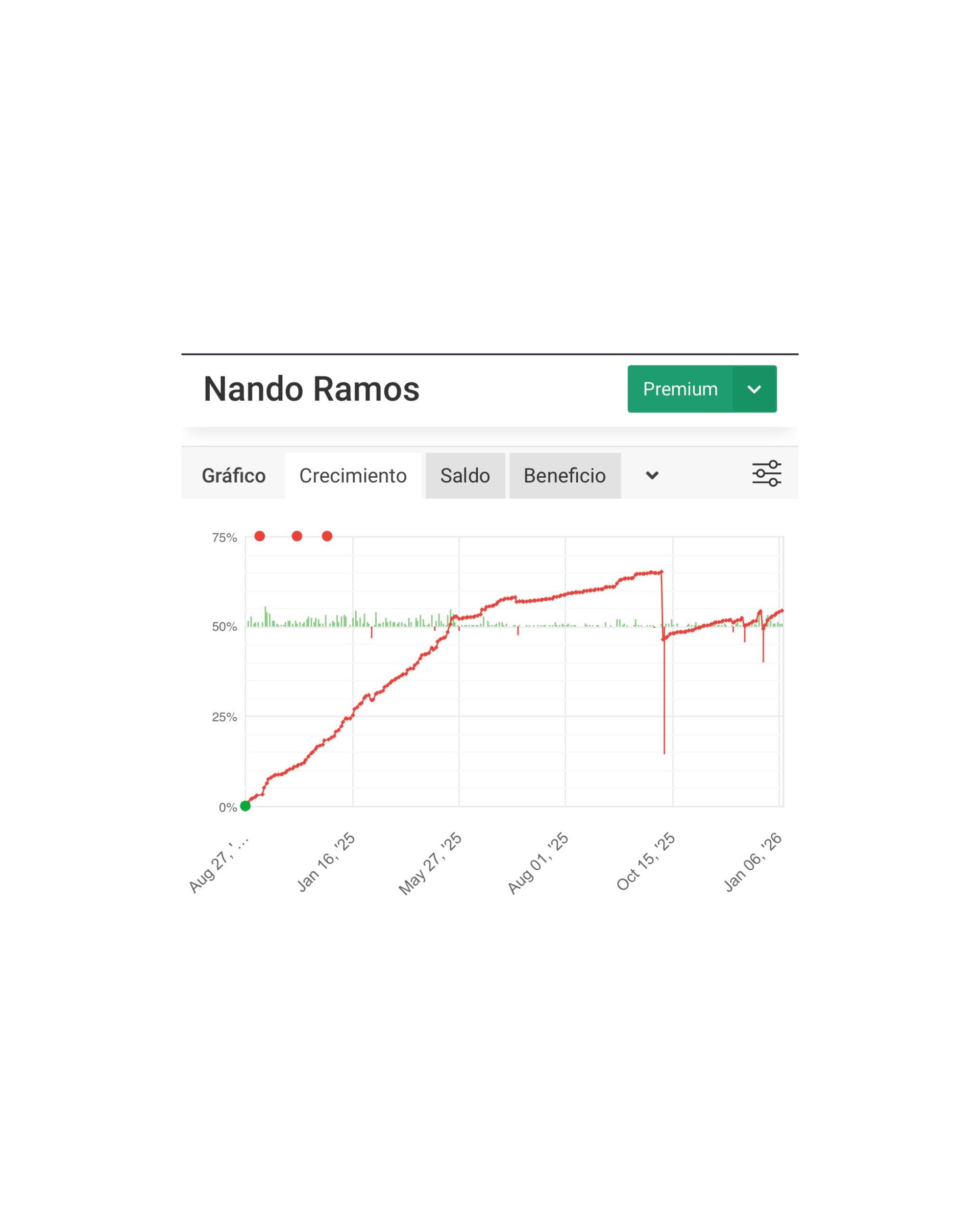 Por ejemplo, si tu inversión genera $100 en ganancias, el 50% de esa cantidad ($50 ) será destinado al pago del servicio como gestor. Este porcentaje se aplica solo sobre las ganancias obtenidas, garantizando que solo pagas por los resultados.
